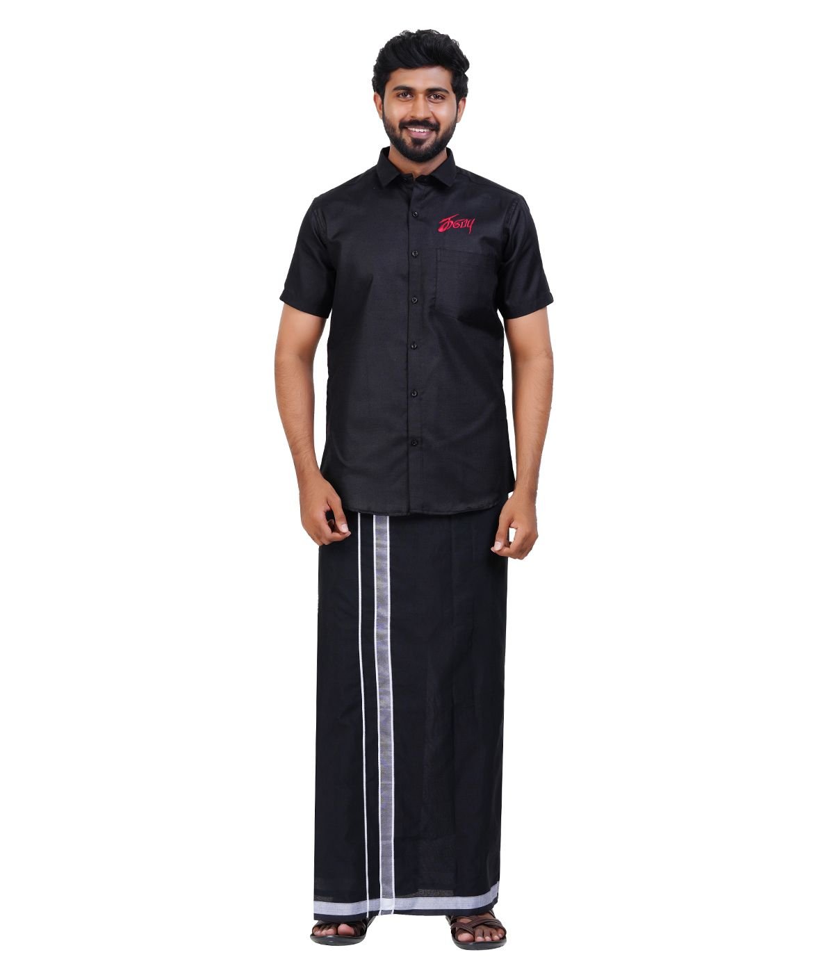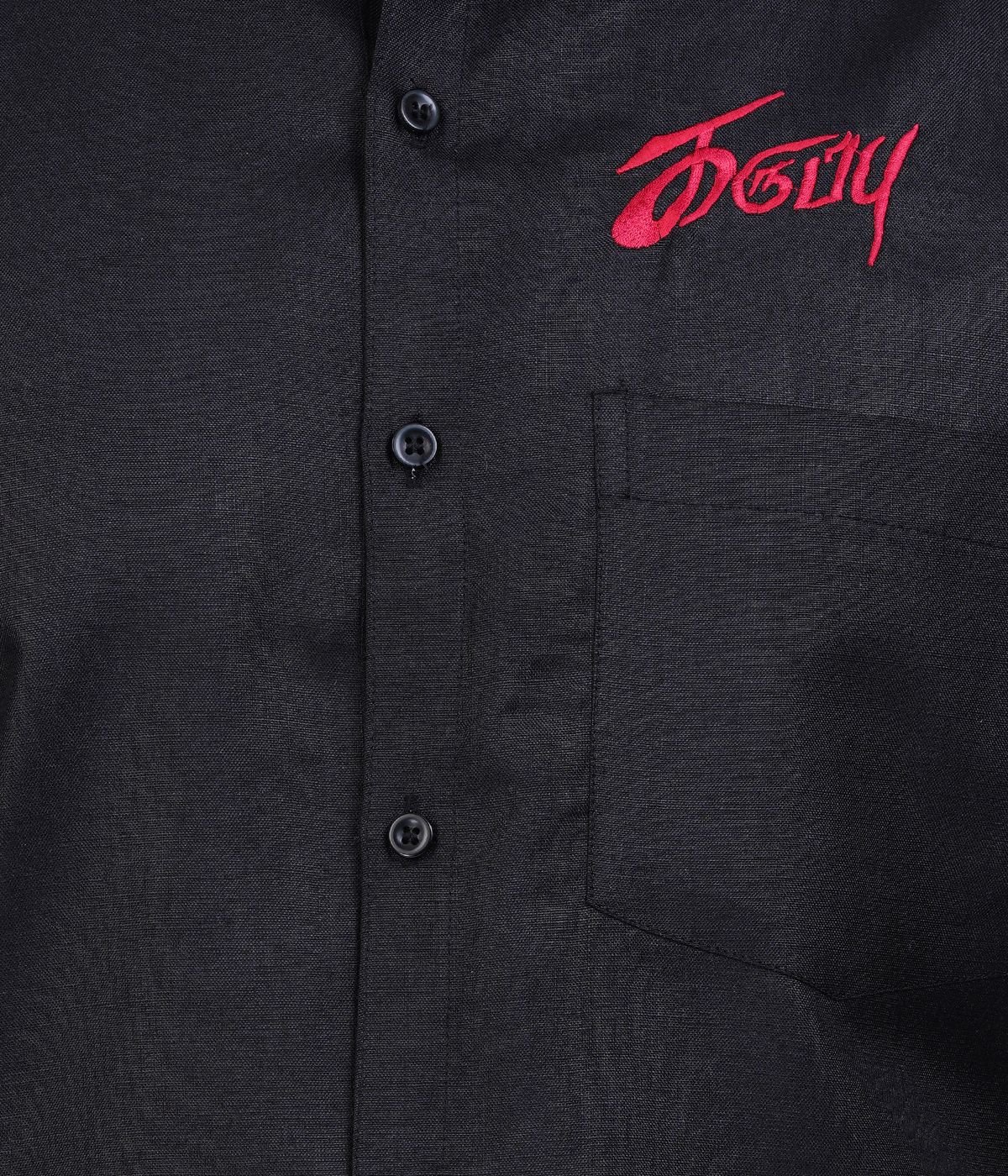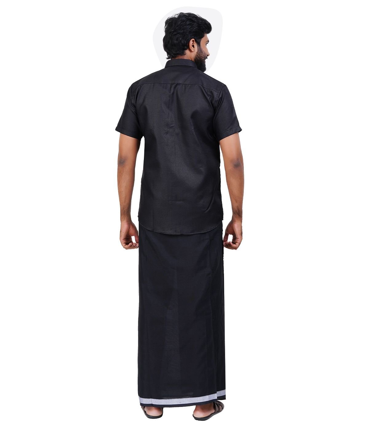 Design: Full Royal Black Vesti (Dhoti) and matching Shirt Combo